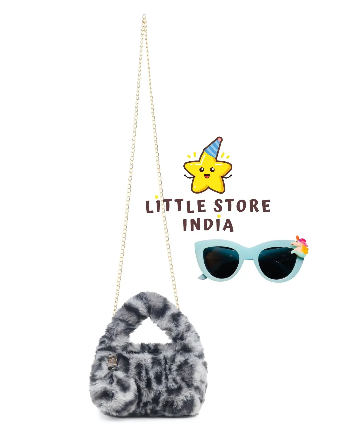The lightweight fur bag is comfortable to carry and ideal for storing small items like toys, candies, coins, or accessories. The cute sunglasses add a fashionable touch and protect the eyes from sunlight. This combo is perfect for birthday parties, outings, travel, photoshoots, and daily use.