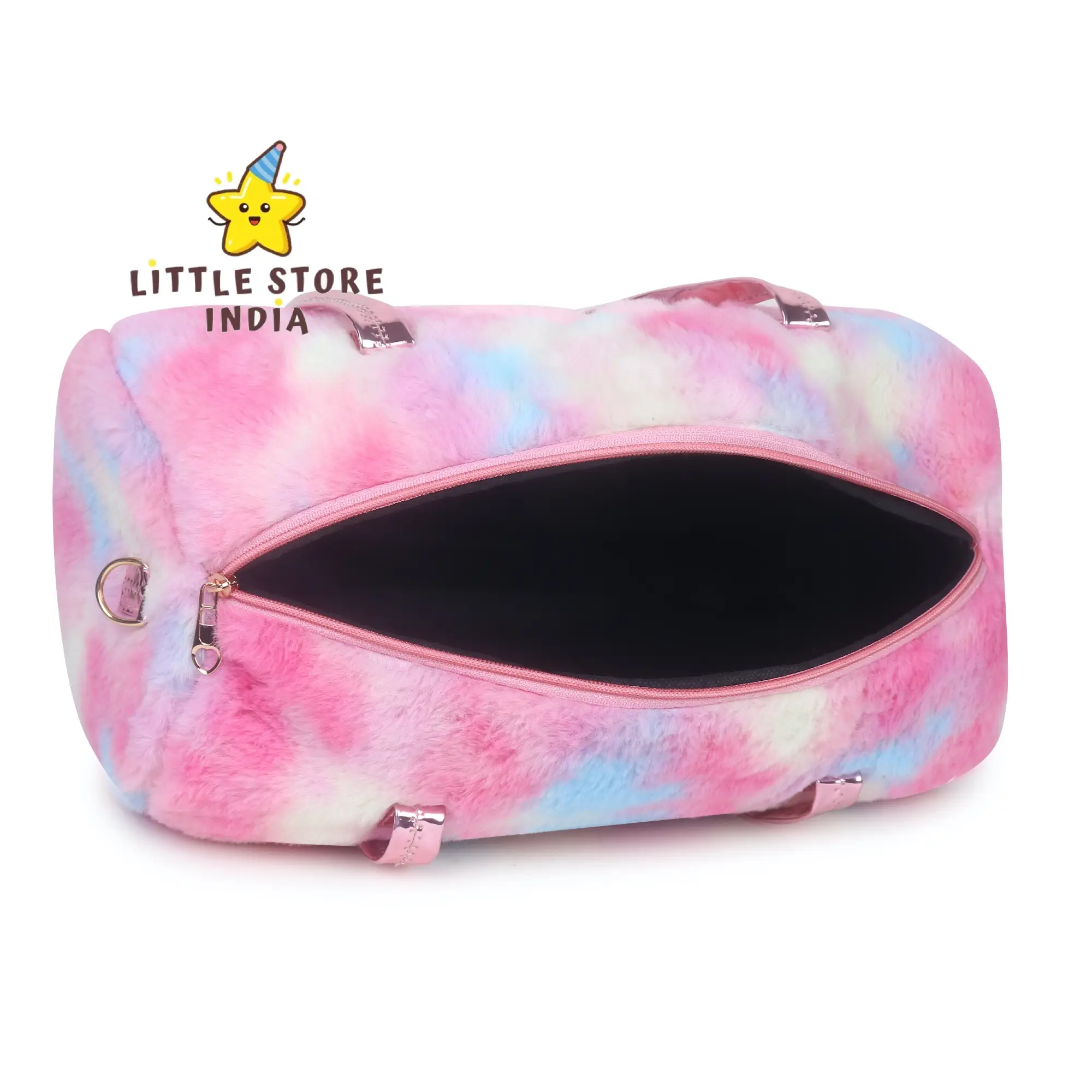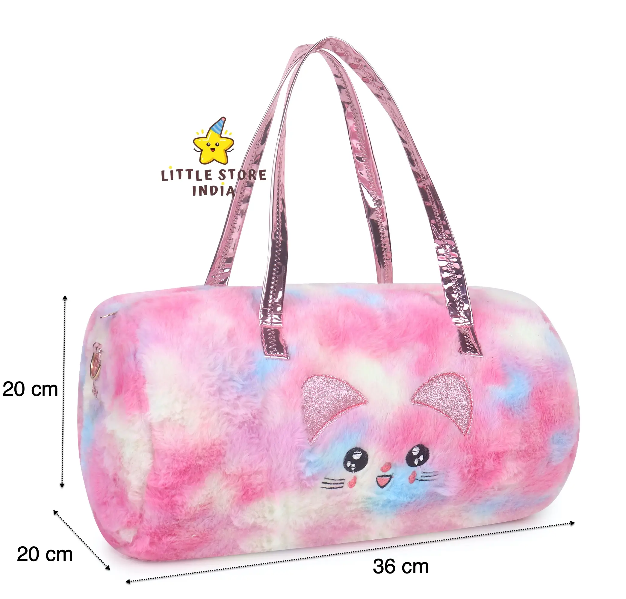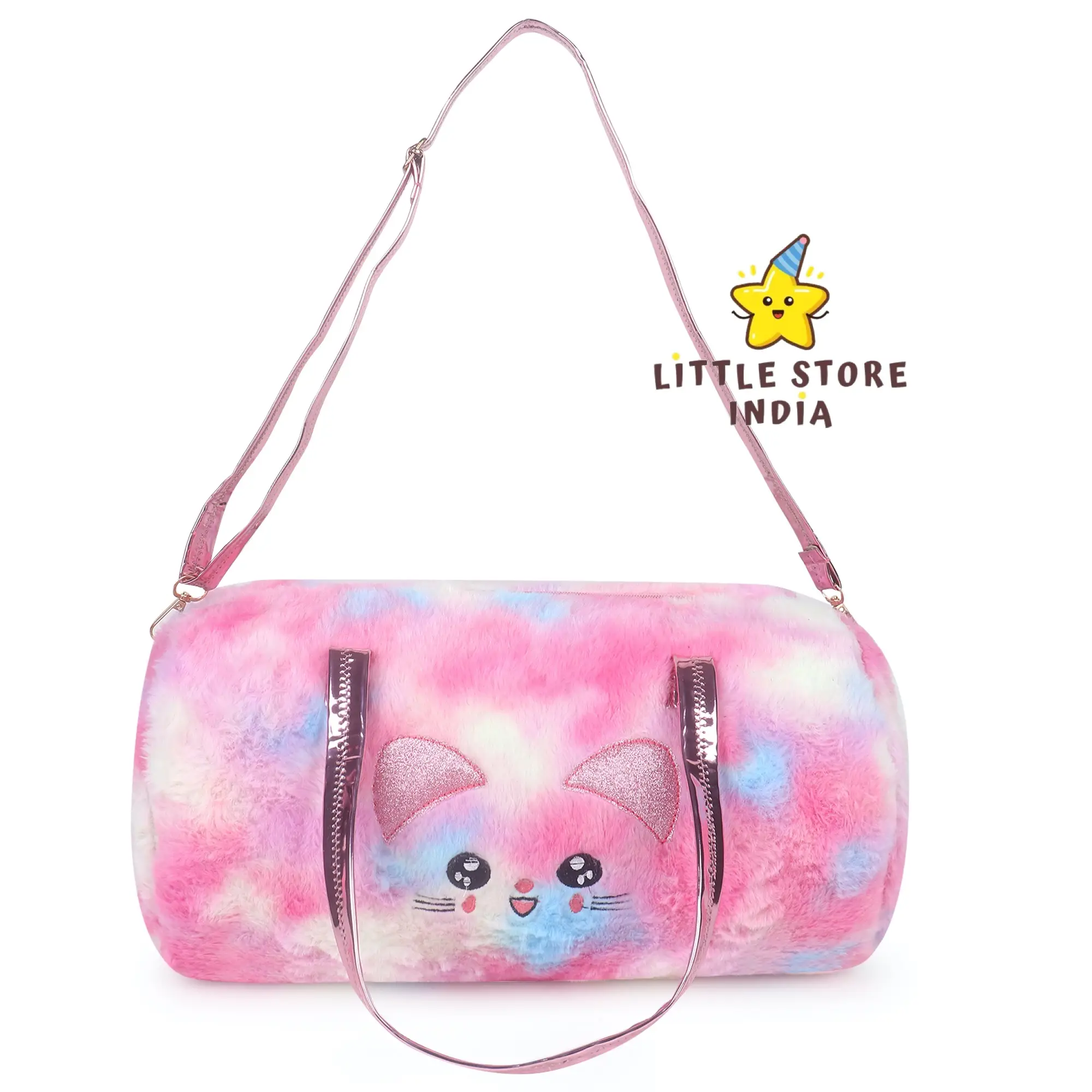 Make travel fun for your child with this cute kids fur duffle bag featuring an adorable cat design. Made from soft plush fur material, this bag is comfortable, lightweight, and stylish for kids.